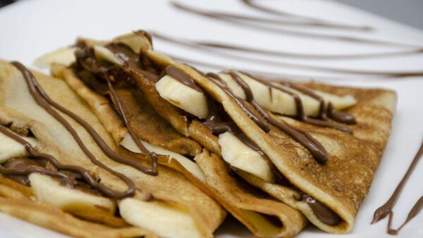 Clatite cu ciocolată/dulceata visine, afine, caise sau capsuni/ciocolata si banane – 2bucati/ porție